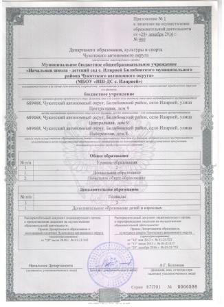 Полное наименование Муниципальное бюджетное общеобразовательное учреждение «Начальная школа - детский сад с. Илирней Билибинского муниципального района Чукотского автономного округа»